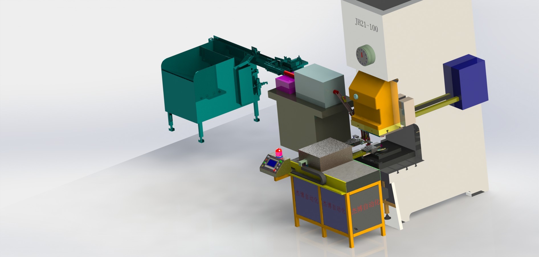 1、單臺(tái)沖床單工序或多道工序紅沖熱鍛自動(dòng)送料;